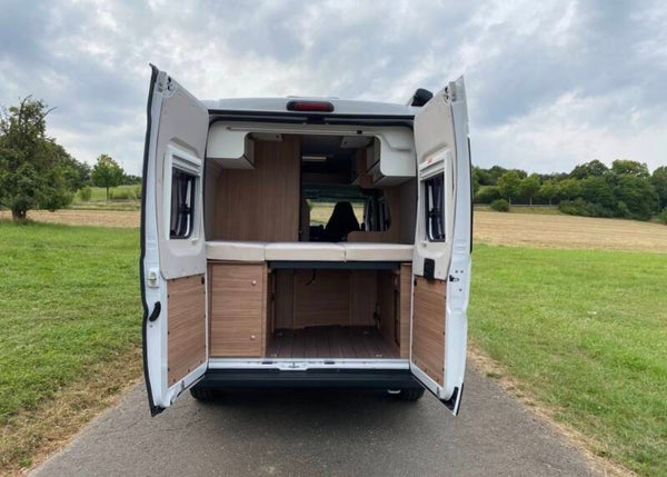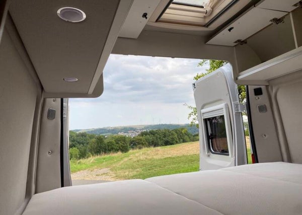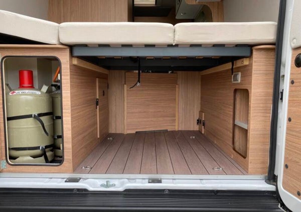- Achterin een comfortabel dwarsbed met opklapfunctie voor extra laadruimte.