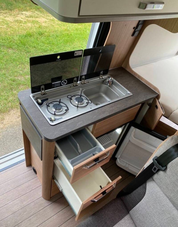 - 🔹 4 zitplaatsen en 2 slaapplaatsen – perfect voor stel of solo-reiziger.