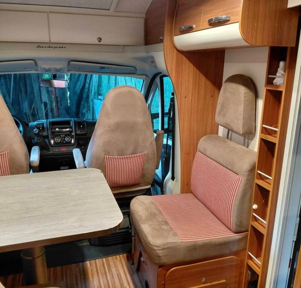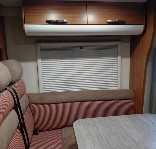 - 🔹 5 zitplaatsen en 5 slaapplaatsen – centraal bed, dinettebed en elektrisch bed.