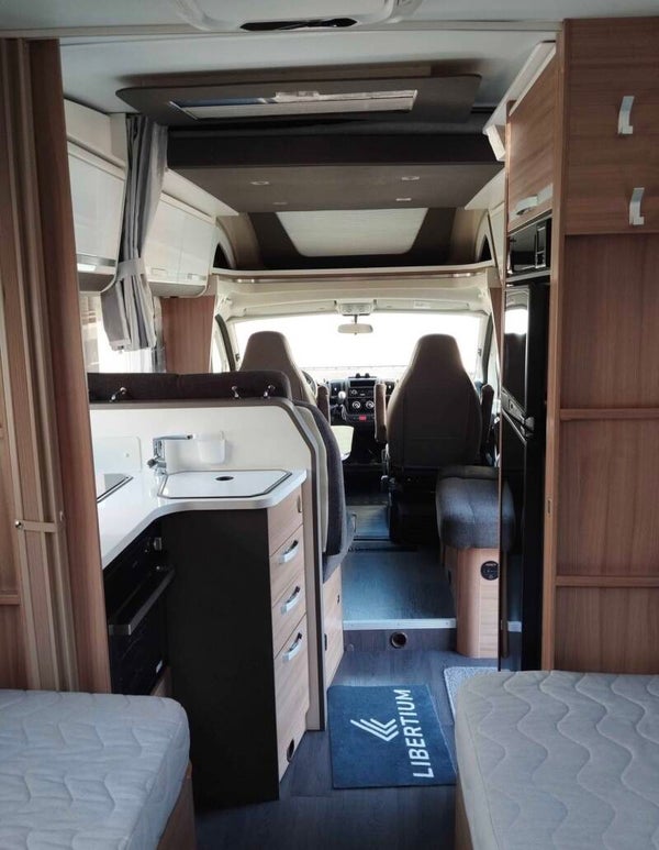 - 🔹 5 zitplaatsen en 5 slaapplaatsen – met enkele bedden achterin, elektrisch hefbed en dinettebed.